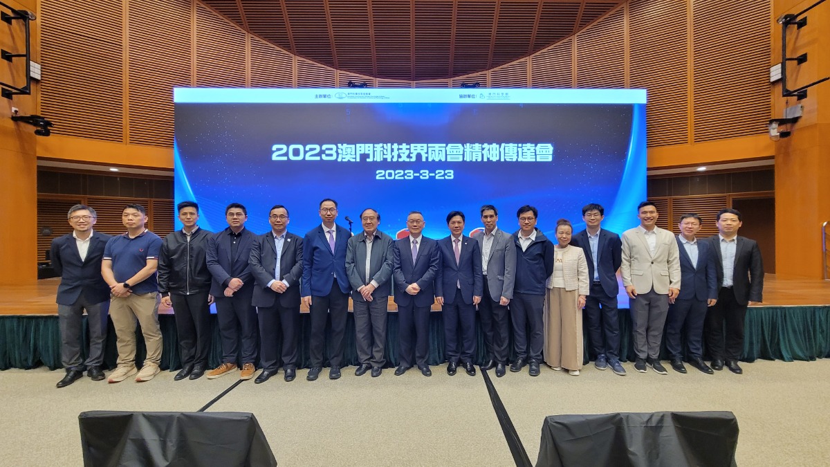 3月23日,澳門科學技術協進會主辦、澳門科學館協辦、澳門基金會贊助“2023澳門科技界兩會精神傳達會”,由澳區全國人大代表、澳門科協會長崔世平以及澳區全國政協委員、中國銀行澳門分行副行長葉兆佳作分享匯報,並邀請澳門中聯辦經濟部副部長黃聖彪、澳門科學技術發展基金行政委員會主席陳允煕、經濟及科技發展局科技廳廳長謝永強等嘉賓出席。傳達會於澳門科學館會議中心會議廳舉行,當日 80多位科技團體及科技企業代表出席,關心國家發展政策和科技創新趨勢,活動由澳門科協理事長邵漢彬主持。