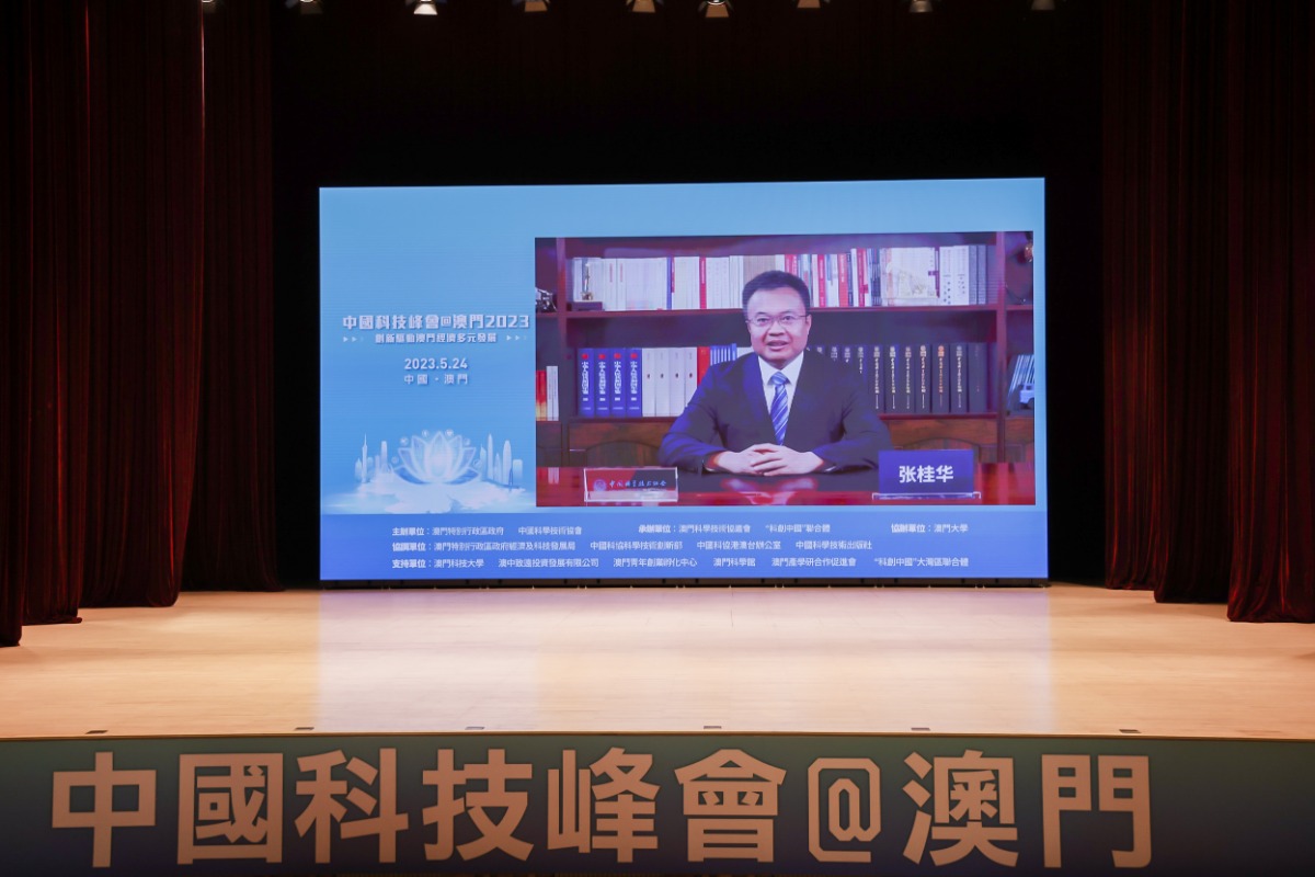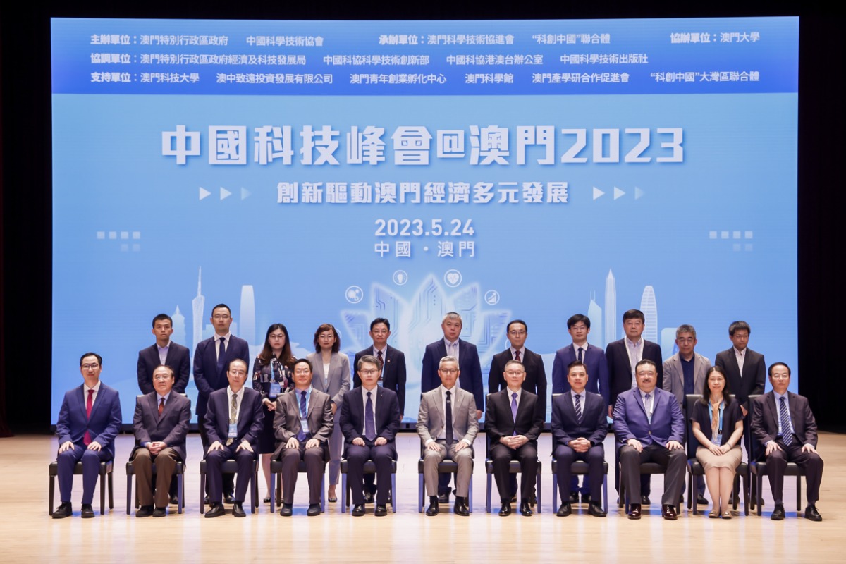 由澳門特別行政區政府、中國科學技術協會主辦,澳門科學技術協進會、〝科創中國”聯合體承辦的〝中國科技峰會〞(下簡稱〝峰會〞)開幕式暨主旨報告、高峰對話於五月廿四日假澳門大學大學會堂舉行,主題為〝創新驅動澳門經濟多元發展〞,吸引內地與澳門各界人士參會。澳門特別行政區政府經濟財政司司長代表、經濟及科技發展局局長戴建業、中央駐澳門特別行政區聯絡辦公室經濟部副部長黃聖彪、中國科協代表,中國科協全委會委員崔世平、主旨報告嘉賓、中國科學院外籍院士、中國科學院北京納米能源與系統研究所所長、首席科學家王中林、主旨報告嘉賓、澳門產學研合作促進會會長、澳門產業技術研究院理事長余成斌、美國醫學與生物工程院院士、深圳理工大學(籌)計算機科學與控制工程學院院長潘毅、加拿大工程院院士、南方科技大學講席教授孟慶虎、國際宇航科學院院士許敖敖、廣東省科協黨組成員、專職副主席范英妍、承辦方代表,澳門科學技術協進會理事長邵漢彬、澳門大學副校長葛偉出席並主禮開幕儀式,由中國科協書記處書記張桂華、澳門特別行政區政府經濟財政司司長代表、經濟及科技發展局局長戴建業分別透過線上及線下形式,作主辦單位致辭。