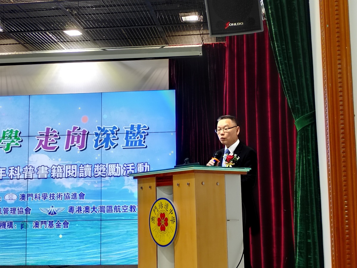 崔世平會長致辭時表示“青少年科普書籍閱讀奬勵活動"是本會連續舉辦第十八年的品牌活動之一,每年的活動都受到各校師生的大力支持及踴躍參與。本會希望藉着每年科普書籍閱讀奬勵活動的不同主題,引領澳門的青少年主動走近科學、繼而熱愛科學,從中培養學習科學的興趣,並能從中獲得更多啟發。