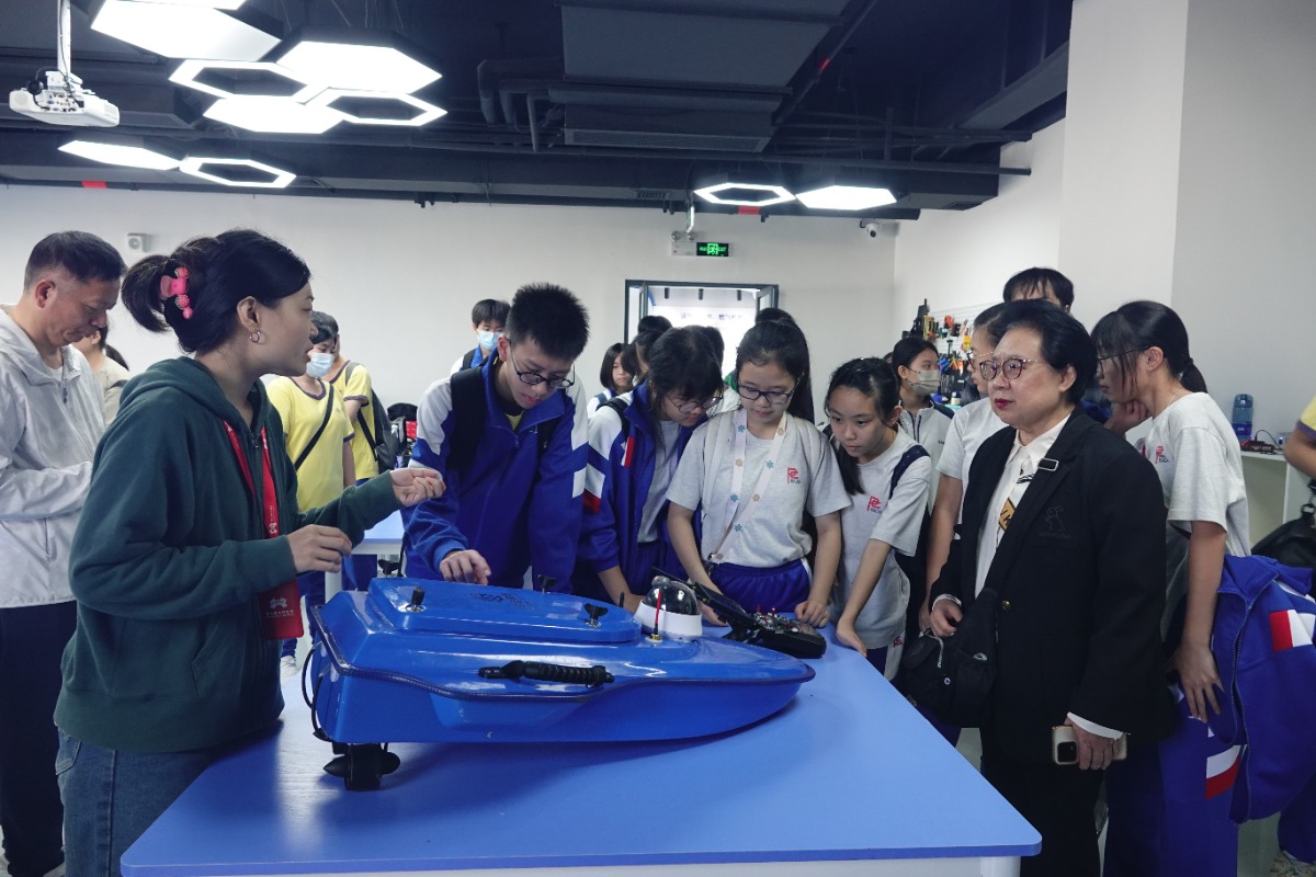 2023年12月9日(星期六)上午十時,在珠海市科協的大力支持下,澳門科協副監事長、澳門青少年科普書籍閱讀獎勵活動工作委員會主席尤淑瑞,副主席、澳門科協監事、粵港澳大灣區航空教育協會會長尤肖其,澳門科協理事、該活動評委葉輔綱等的帶領下,澳門培正中學、培道中學、澳門坊眾學校、化地瑪聖母女子中學的老師及獲獎同學準時抵達無人船科普基地,開始為期半天的研學活動。雲洲智能科技的負責人對於各位評委和師生的到來表示熱烈歡迎。
