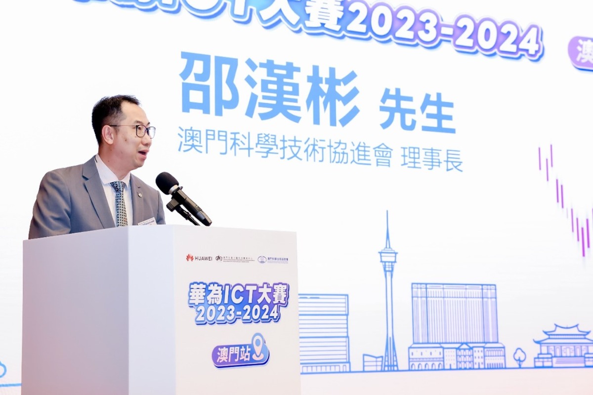 “華為ICT大賽 2023-2024 澳門站頒獎典禮”16日下午3時半假澳門科學館會議中心會議廳舉行。活動匯聚政府及機構代表、科技行業代表以及本地19間院校師生等200餘人參與,共同圍繞人才培育,提升本地科技人才競爭力等議題進行研討,幷表彰本届大賽優勝隊伍。