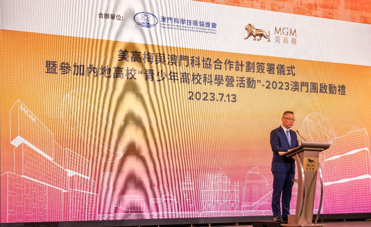 『2023青少年澳門本地高校科學營活動』由澳門科學技術協進會(簡稱澳門科協)和澳門青少年科普教育協會(簡稱科普協會)共同主辦,澳門大學與澳門科技大學協辦。活動『開營儀式暨第一公開課』 於7月13日上午在美獅美高梅宴會廳成功舉行。
