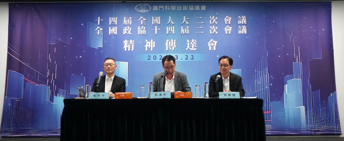 傳達會由澳門科協理事長邵漢彬主持,希望透過分享會,讓澳門科技界學習“兩會”內容和貫徹“兩會”精神,推動澳門科技的新質生產力發展,推動澳門科技界融入灣區和國家的發展大局。