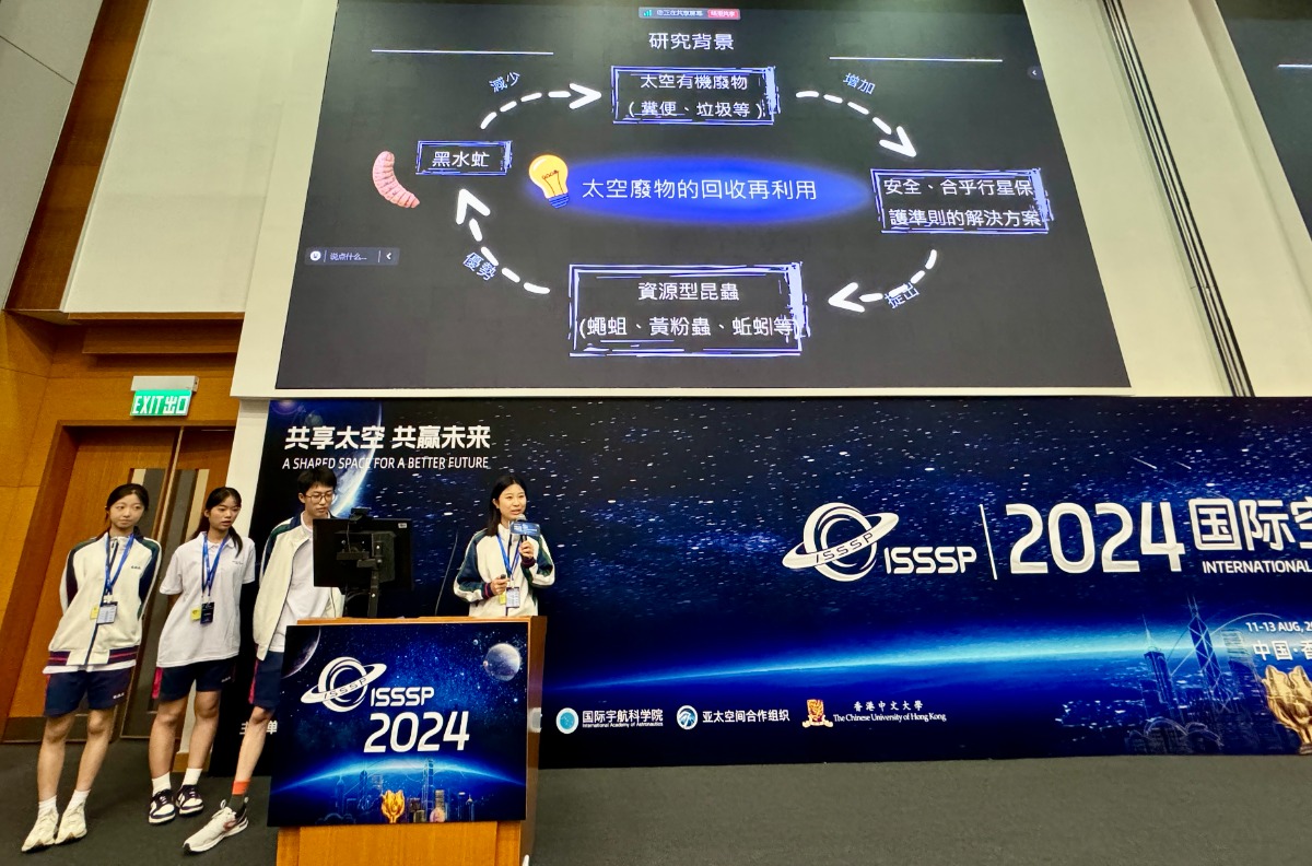 澳門坊眾學校澳坊一號隊伍憑借其項目「太空清道夫:空間環境對黑水虻生長發育的影響研究」榮獲ISSSP中學生觀摩賽金獎。隊伍代表張同學分享獲獎感受,“很開心團隊能代表澳門前往香港參加2024國際空間科學與載荷大賽(ISSSP)並獲得金獎,感謝主辦單位給予的機會及老師們的辛苦指導。”