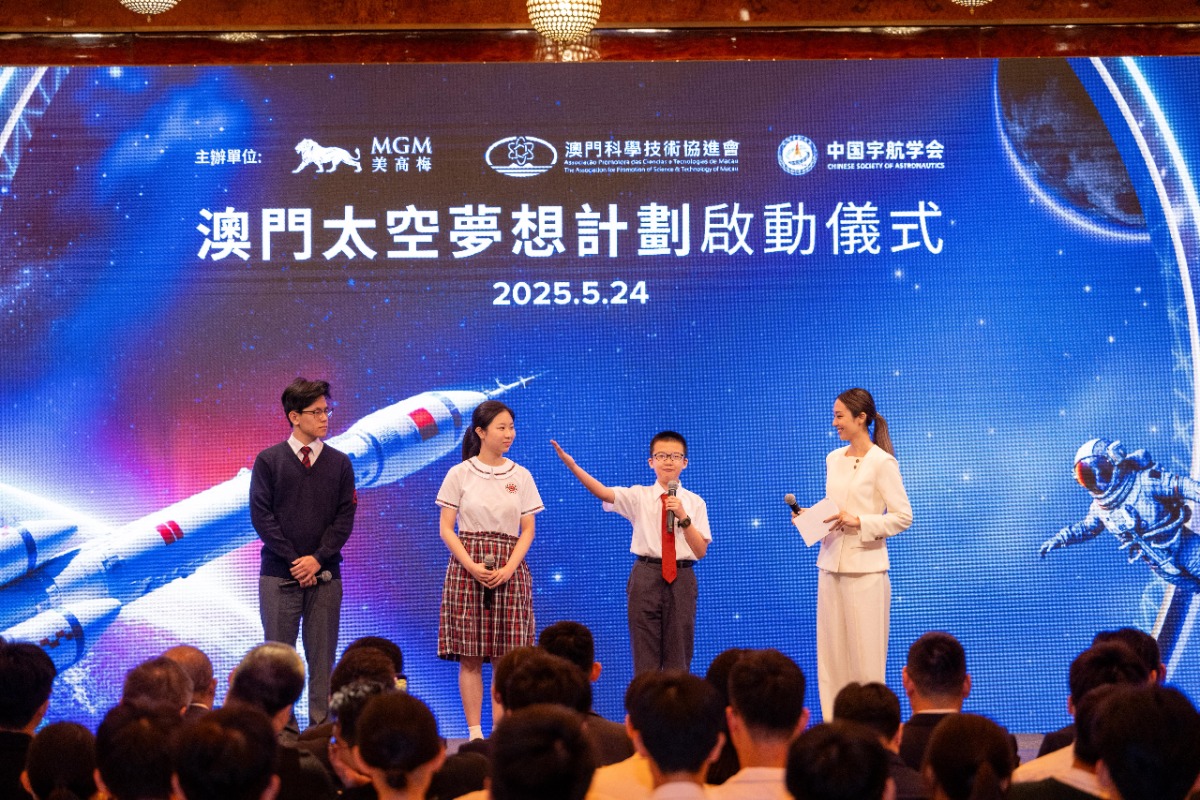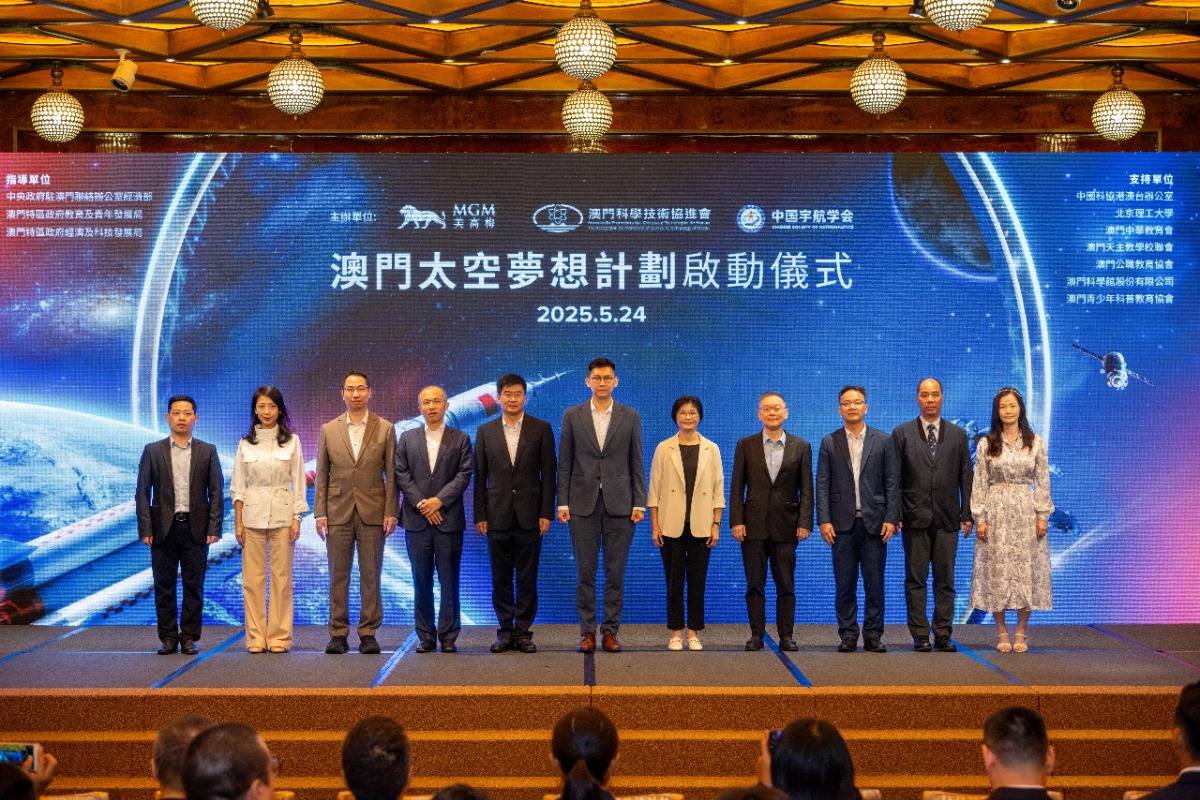由澳門科學技術協進會(以下簡稱「澳門科協」)、美高梅及中國宇航學會聯合主辦的「澳門太空夢想計劃」(5月24日)假澳門美高梅隆重舉行啟動儀式。活動獲中央人民政府駐澳門特別行政區聯絡辦公室經濟部、澳門特別行政區政府教育及青年發展局、澳門特別行政區政府經濟及科技發展局指導,並獲中國科協港澳台辦公室、澳門科學館等多個單位支持,逾350名本澳師生及科技界代表出席,共同見證澳門青少年航天科普教育的新篇章。