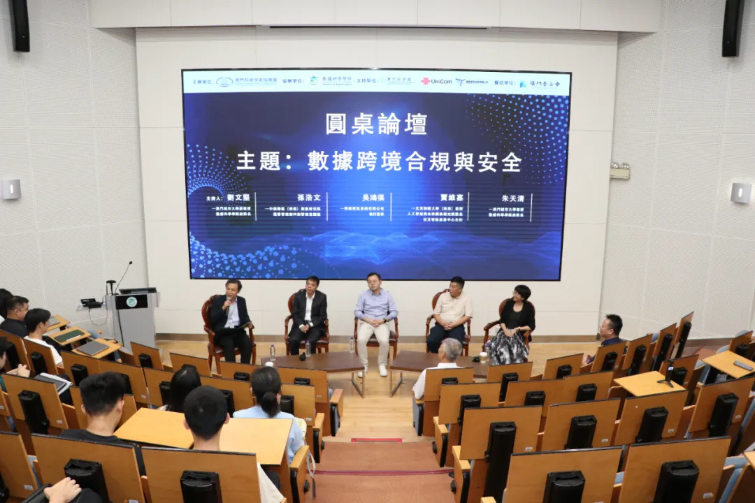 下午的圓桌論壇,由本會理事,澳門城市大學數據科學學院副院長劉文堅副教授主持,論壇以「數據跨境合規與安全」為主題,邀請學界及行業内企業代表們就電信基礎設施、企業數據管理及智能算力安全等方面暢所欲言,深入探討了跨境數據傳輸的法律合規、技術防護與區域協作等議題,為本澳深度融入大灣區數據要素市場建設提出了寶貴建議。