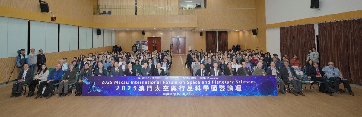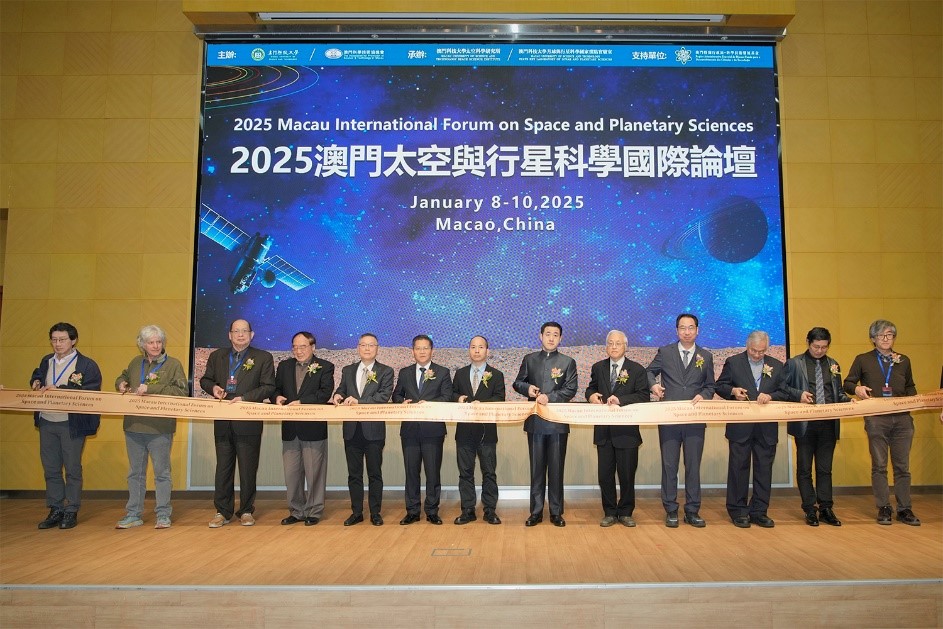 「2025澳門太空與行星科學國際論壇」開幕式於2025年1月8日在澳門科技大學N101大禮堂順利舉辦。論壇由澳門科技大學及澳門科學技術協進會聯合主辦;澳科大太空科學研究所,月球與行星科學國家重點實驗室承辦,並得到澳門科學技術發展基金支持,澳門基金會部分贊助。吸引來自美國、德國、義大利、印度、日本、中國內地及港澳台等200多位太空與行星科學領域的學者參與本次會議。