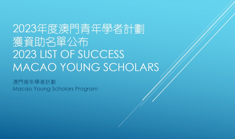 2023年度“澳門青年學者計劃”獲資助名單已於日前公佈。